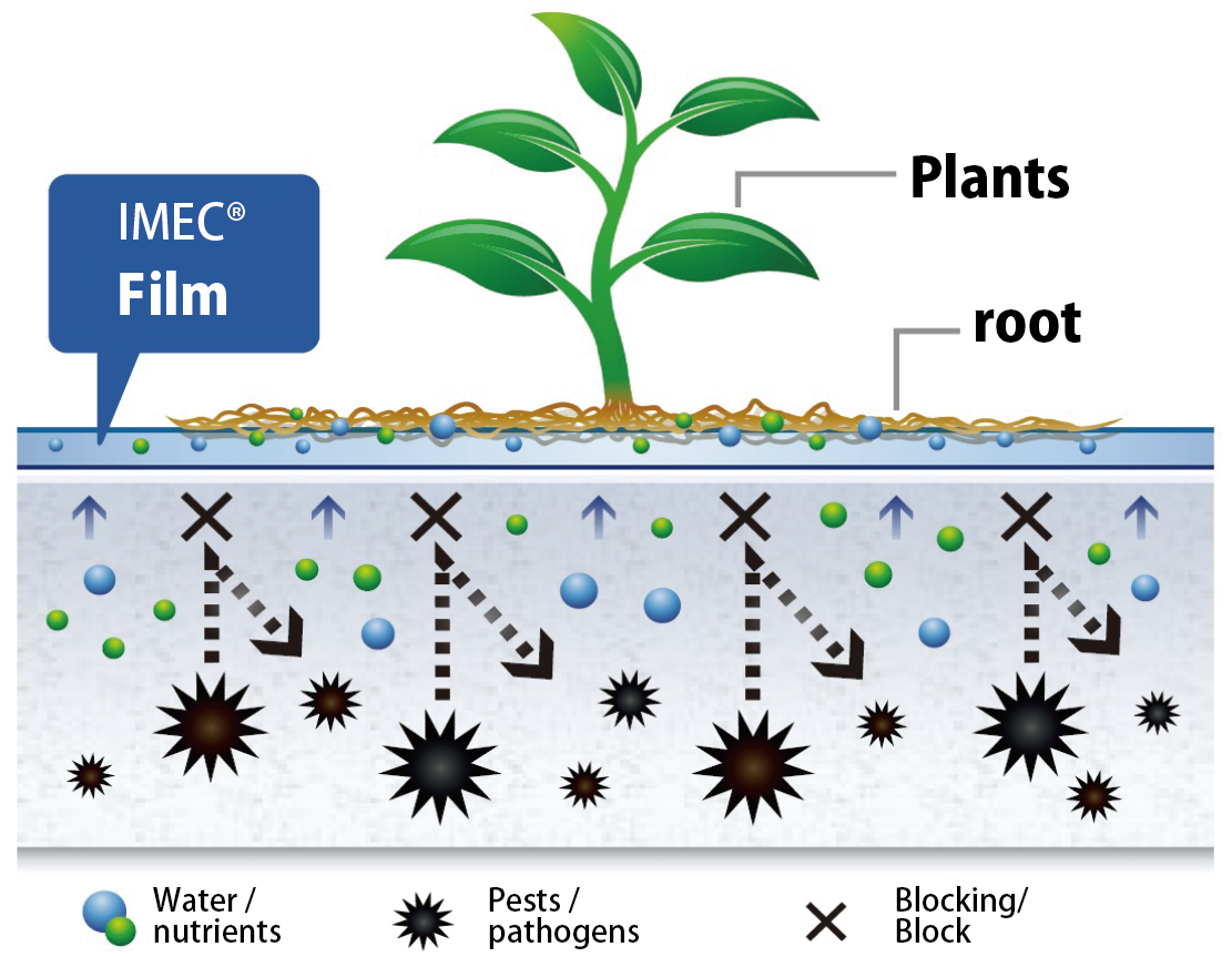 Hydrogel film developed for medical use is utilized in agriculture for the first time in the world. This ImecTM film allows only water and nutrients to pass through to the plants while eliminating bacteria and viruses, thus reducing the use of pesticides. Since water in hydrogel is difficult for plants to absorb, plants produce more sugar and amino acids as they try to absorb water in this hydrogel by increasing osmotic pressure. As a result, for example, sweet and tasty tomatoes can be produced.