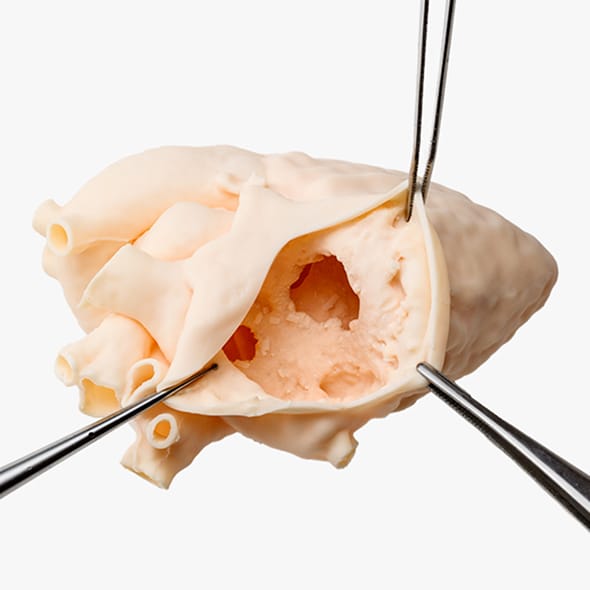 外科医による切開・縫合などの具体的な手術シミュレーションが可能となる軟質実物大3D心臓モデル(製品名:MedipreX?)は2025年6月に保険収載されました。