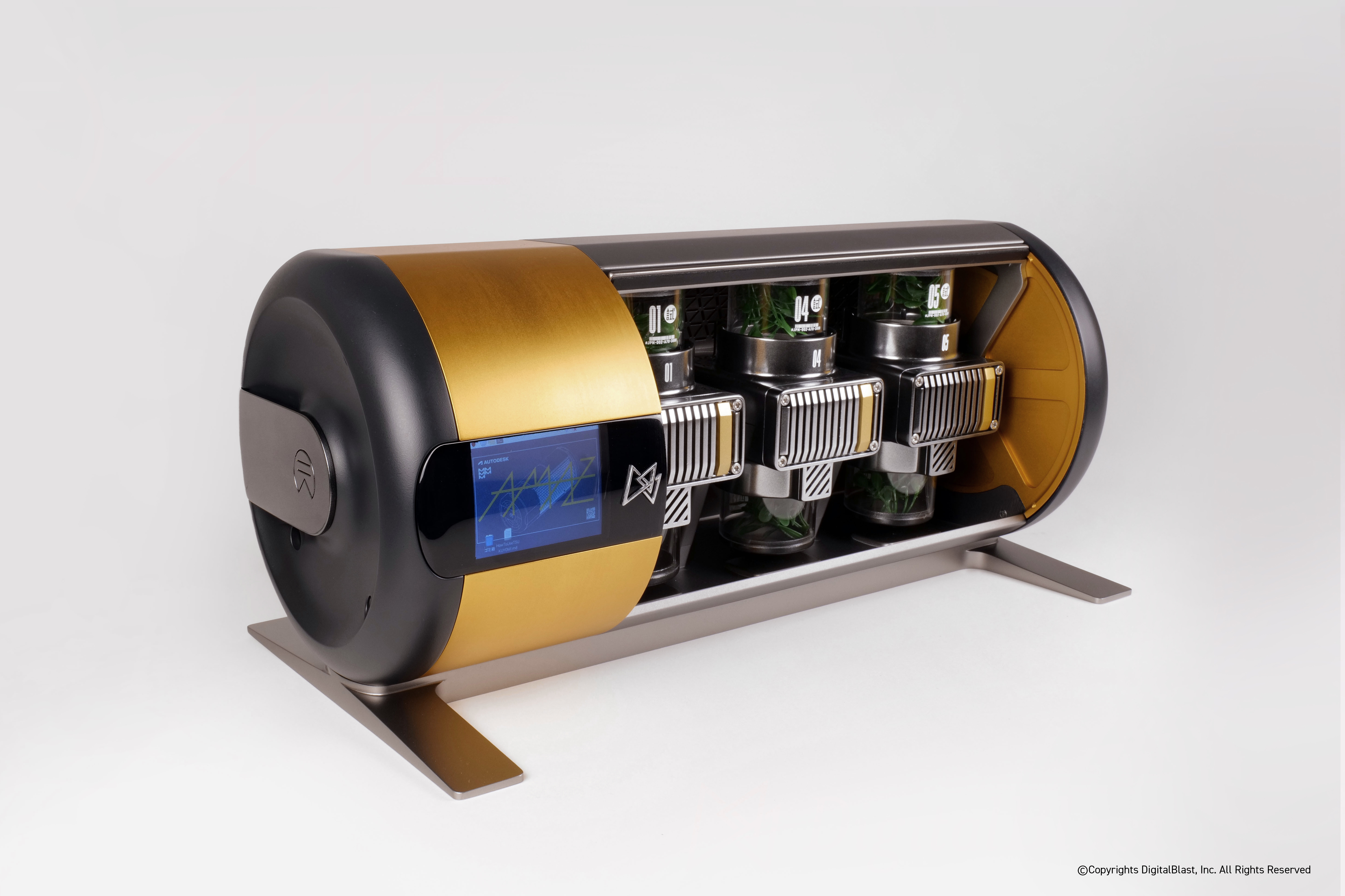 ISSや次世代宇宙ステーションへの搭載を想定した先端植物実験装置「AMAZ(アマツ)」モデル展示。地球低軌道や月・火星など地球とは異なる重力を再現した環境でコケや酵母の生育実験を行い、重力応答データの取得と地上課題の解決に貢献します。